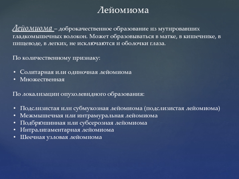 Слайд 23Лейомиома