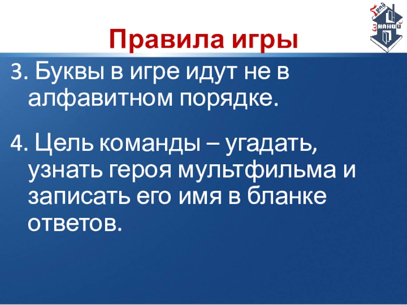 Цель команды – угадать, узнать героя мультфильма и записать его