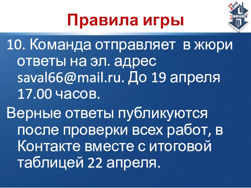 saval66@mail.ru. До 19 апреля 17.00 часов.