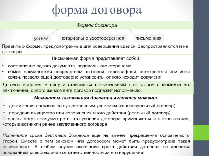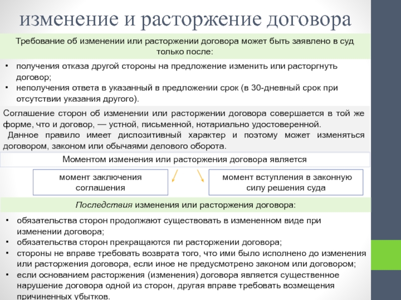 Общие нормы об исполнении обязательств, о способах их исполнения, об ответственности за их нарушение применяются и к договорам. При этом для договора имеют значение и специальные нормы о порядке его заключения, основаниях изменения, расторжения и др.