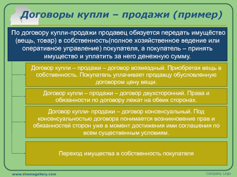 Договор купли – продажи – договор возмездный. Приобретая вещь в собственность. Покупатель уплачивает продавцу обусловленную договором цену вещи.