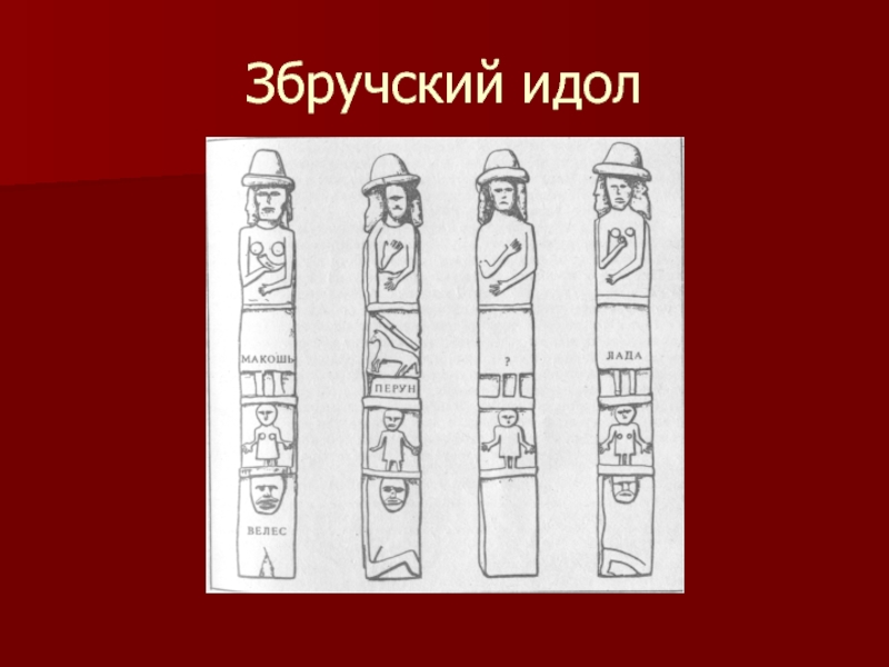 Государственный периодПантеон князя Владимира (980 г.)Перун (громовержец)Стрибог (воздушные стихии)Даждьбог (свет, тепло, небесное начало)Хорс (солнце)Семаргл (охранитель посевов)Макошь