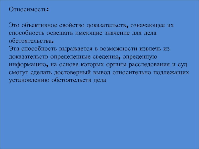 Это объективное свойство доказательств, означающее их способность освещать имеющие значение