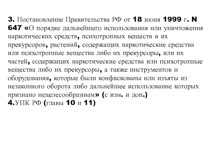 647 «О порядке дальнейшего использования или уничтожения наркотических средств, психотропных