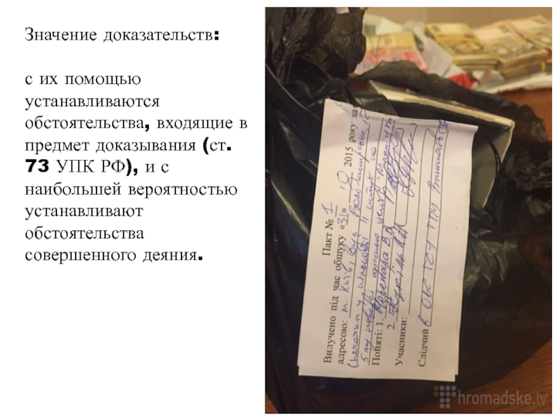 определенные сведения, опреденную информацию, на основе которых органы расследования и суд смогут сделать достоверный вывод относительно подлежащих установлению обстоятельств дела