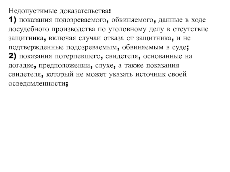 2) показания потерпевшего, свидетеля, основанные на догадке, предположении, слухе, а также показания свидетеля, который не может указать источник своей осведомленности;