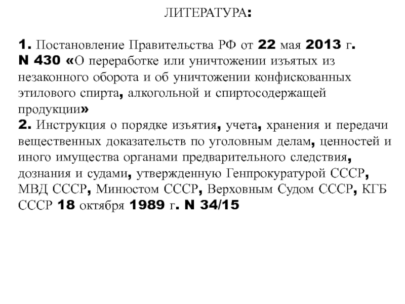 переработке или уничтожении изъятых из незаконного оборота и об уничтожении