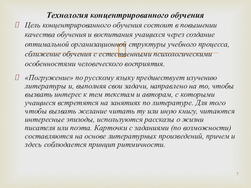 Выделяются основные средства достижения поставленных задач при использовании концентрированного обучения.