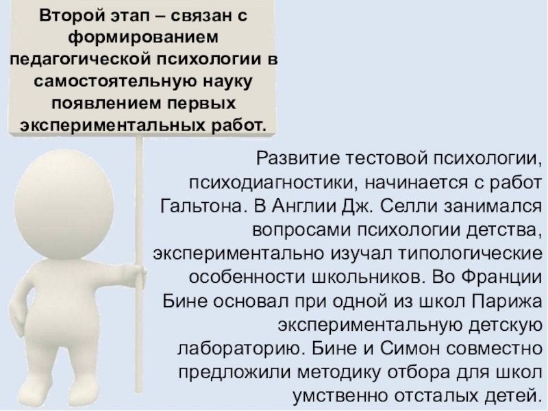 Слайд 13Второй этап – связан с формированием педагогической психологии в самостоятельную