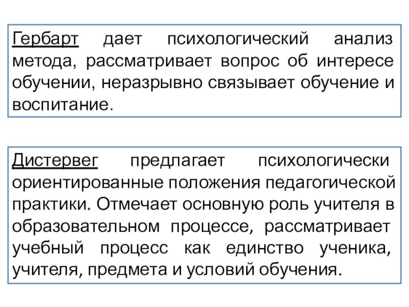 Слайд 10Гербарт дает психологический анализ метода, рассматривает вопрос об интересе обучении,