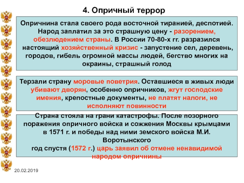 год спустя (1572 г.) царь заявил об отмене ненавидимой