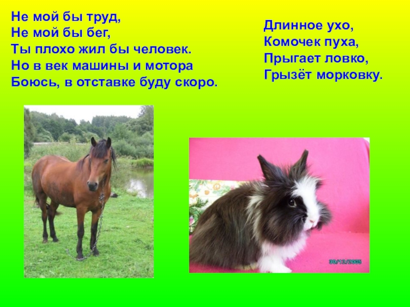Не мой бы труд,Не мой бы бег,Ты плохо жил бы человек.Но в век машины и мотораБоюсь, в