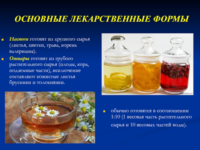обычно готовятся в соотношении 1:10 (1 весовая часть растительного сырья и 10 весовых частей воды).