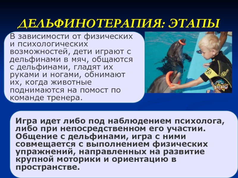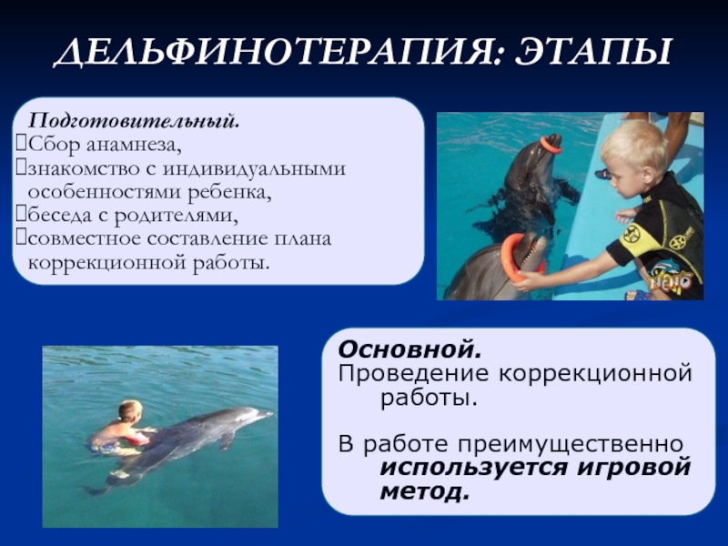Слайд 13ДЕЛЬФИНОТЕРАПИЯ: ЭТАПЫ