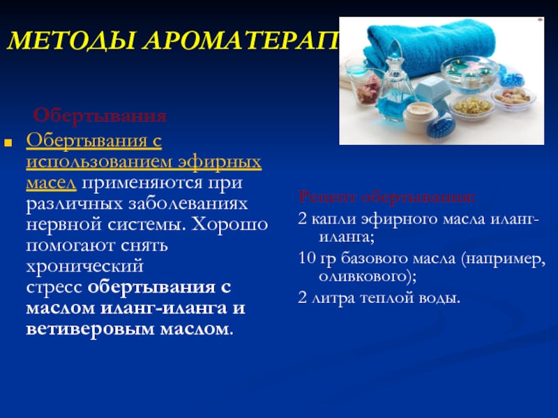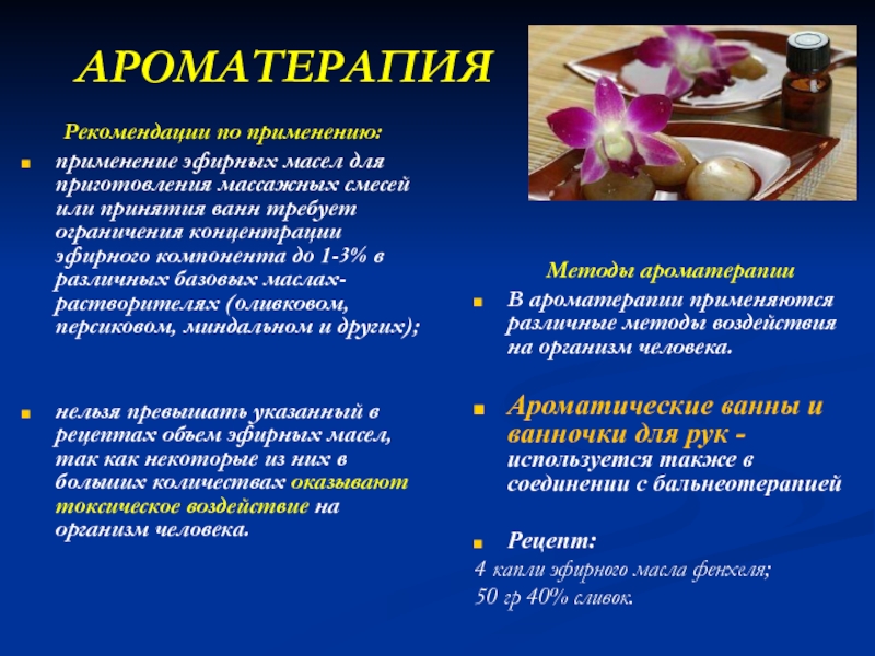 Слайд 44АРОМАТЕРАПИЯ МЕТОДЫ