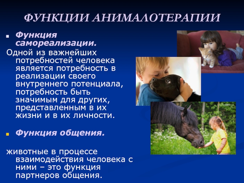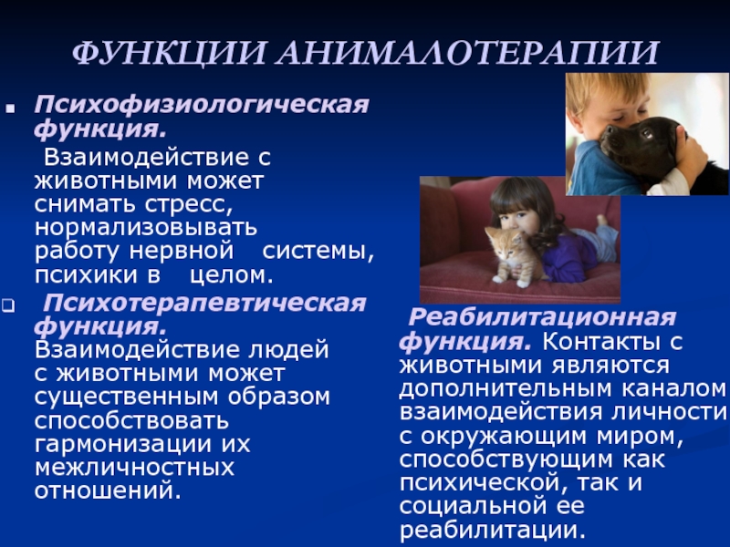 Слайд 4ФУНКЦИИ АНИМАЛОТЕРАПИИ