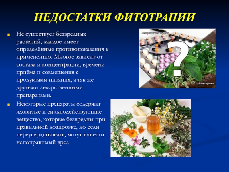 Слайд 52НЕДОСТАТКИ ФИТОТРАПИИ