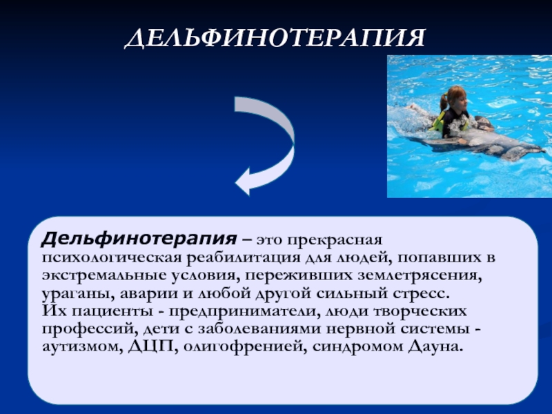 Слайд 10ДЕЛЬФИНОТЕРАПИЯ
