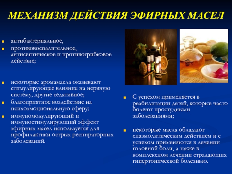Слайд 45МЕХАНИЗМ ДЕЙСТВИЯ ЭФИРНЫХ МАСЕЛ
