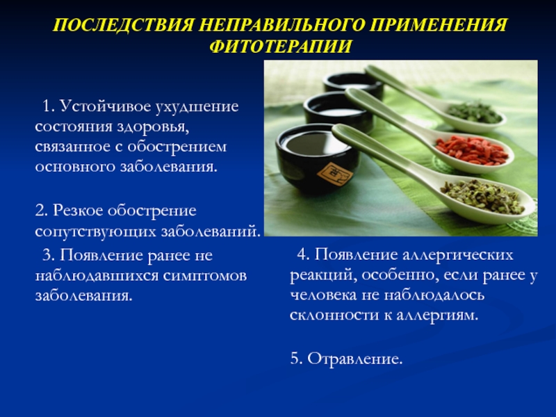 Слайд 53ПОСЛЕДСТВИЯ НЕПРАВИЛЬНОГО ПРИМЕНЕНИЯ ФИТОТЕРАПИИ