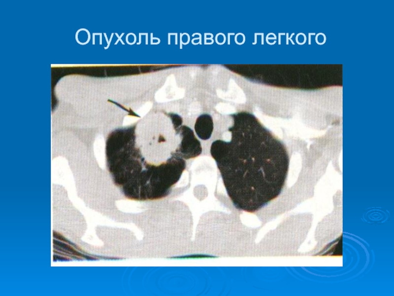 Слайд 33Затемнение части легочного поля. Центральный рак правого легкого