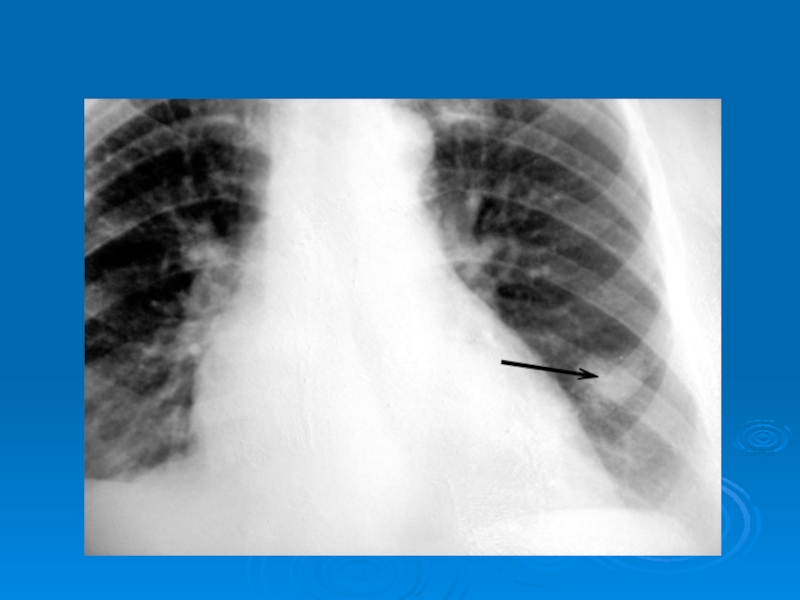 Слайд 39Затемнение части легочного поля (гидроторакс)