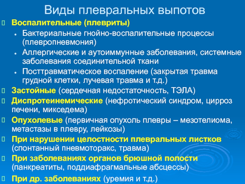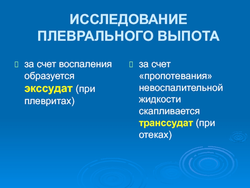 скопление жидкости в полости плевры, ателектаз легкого, цирроз легкого)