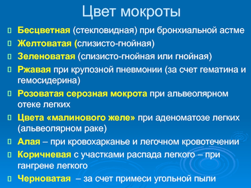 Мокрота - патологический секрет дыхательных путей, выделяемый с кашлем