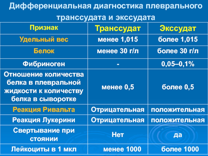 скопление жидкости в полости плевры, ателектаз легкого, цирроз легкого)