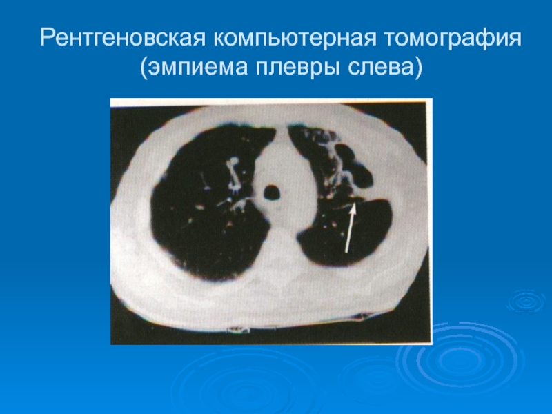 Слайд 50Рентгеновская компьютерная томография (эмпиема плевры слева)