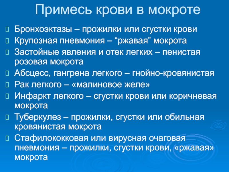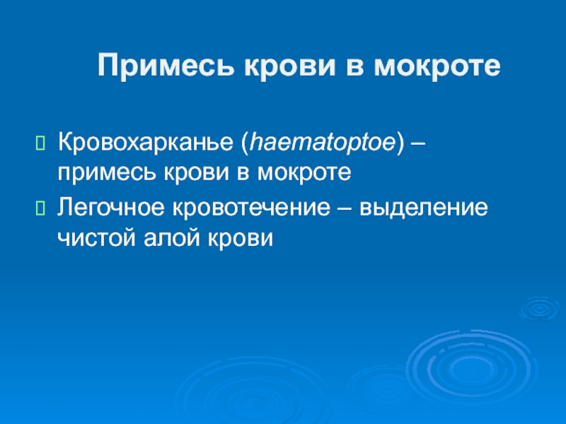 Кровохарканье (haematoptoe) – примесь крови в мокроте