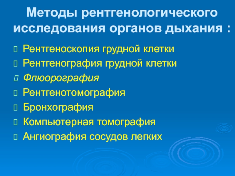 Слайд 29Методы рентгенологического исследования органов дыхания :