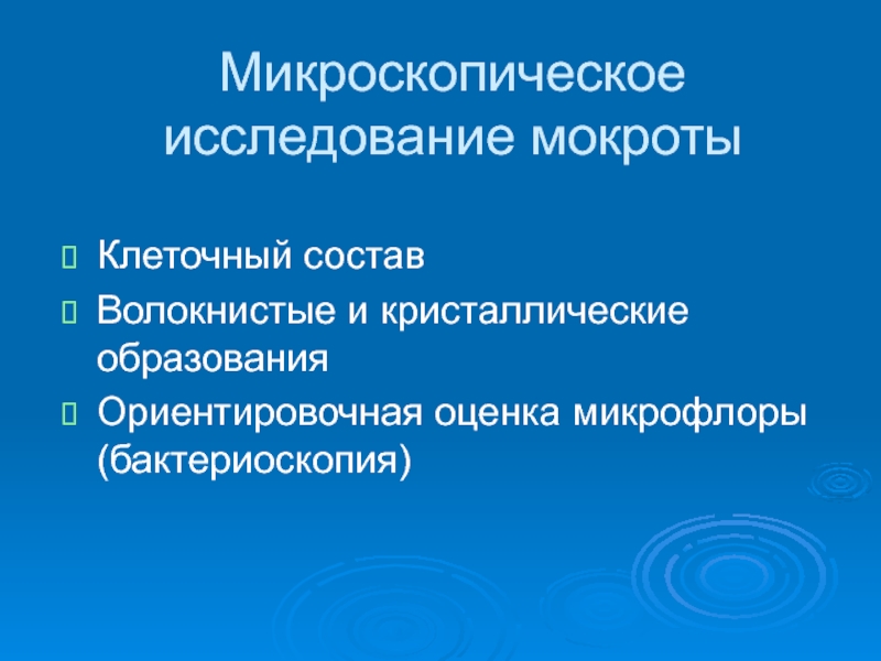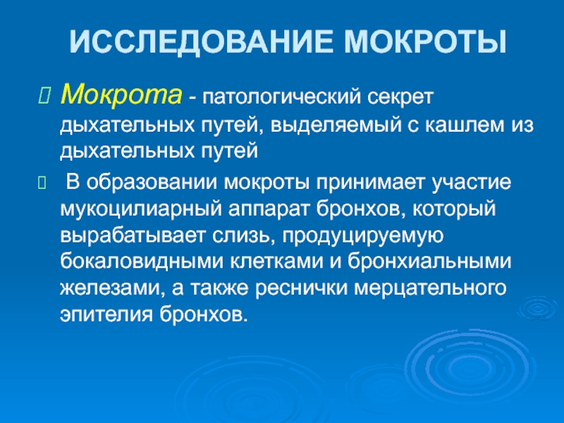 Слайд 2ИССЛЕДОВАНИЕ МОКРОТЫ