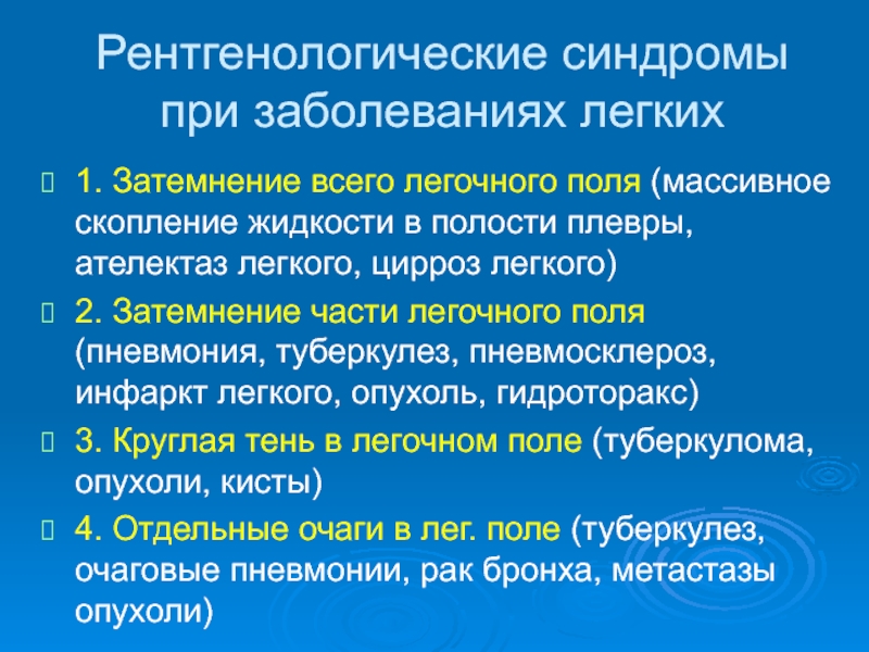 Слайд 27Рентгенологические синдромы при заболеваниях легких