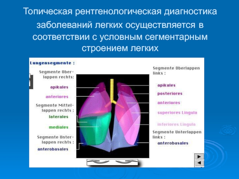 Слайд 26Топическая рентгенологическая диагностика заболеваний легких осуществляется в соответствии с условным
