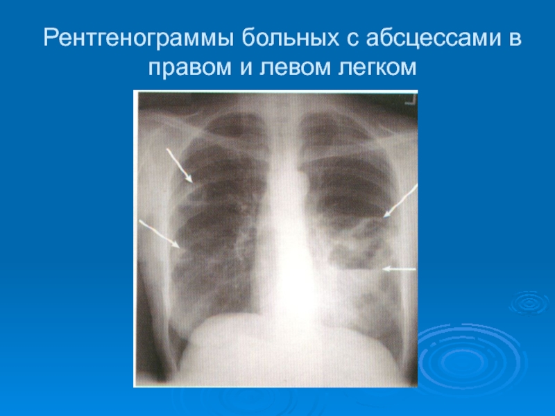 Слайд 44Рентгенограммы больных с абсцессами в правом и левом легком