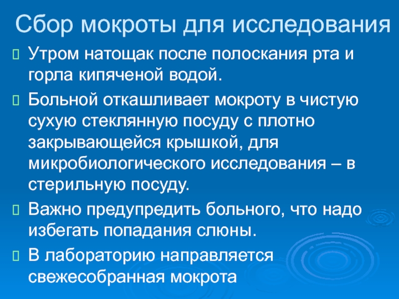 Больной откашливает мокроту в чистую сухую стеклянную посуду