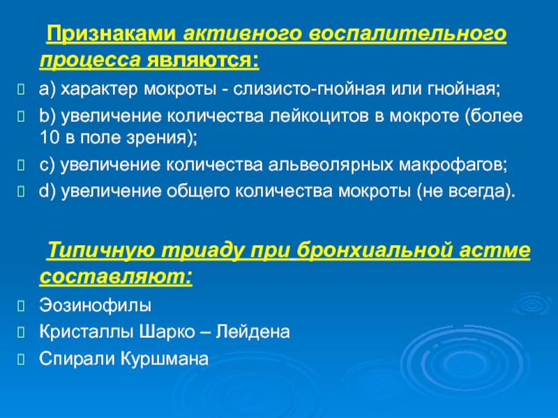 Слайд 18 Признаками активного воспалительного процесса являются: