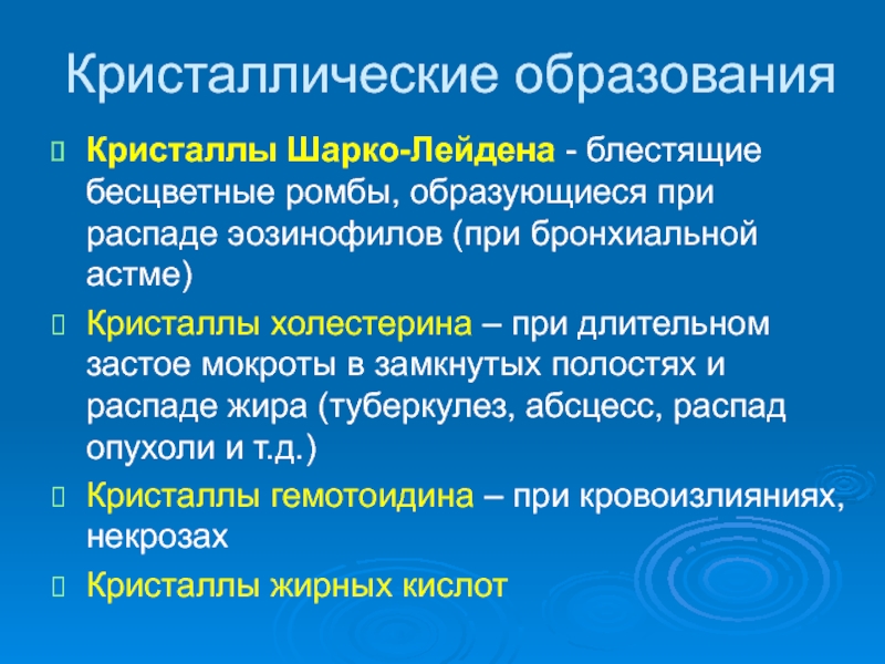 Кристаллы Шарко-Лейдена - блестящие бесцветные ромбы, образующиеся при распаде