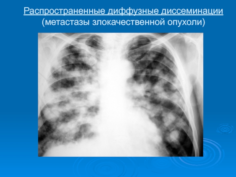 Слайд 43Распространенные диффузные диссеминации (метастазы злокачественной опухоли)