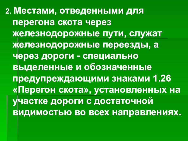 Слайд 182. Местами, отведенными для перегона скота через железнодорожные пути, служат