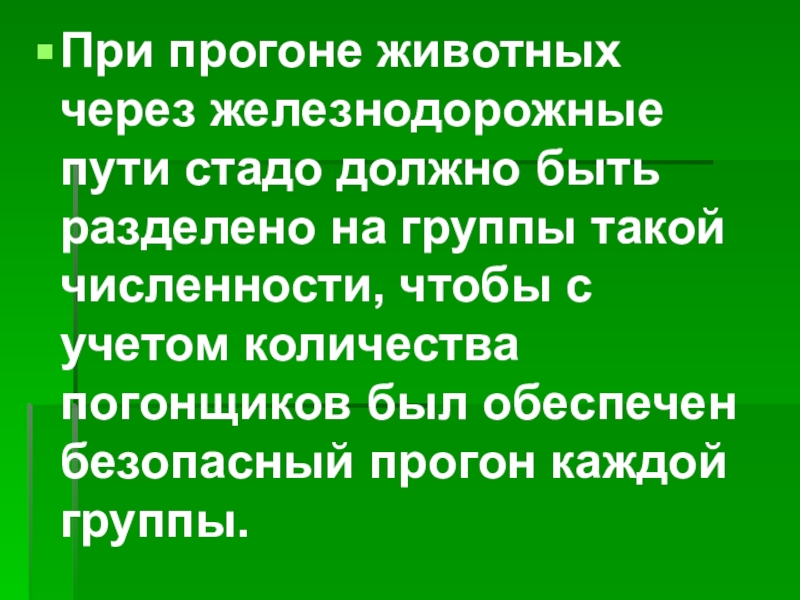 Слайд 13При прогоне животных через железнодорожные пути стадо должно быть разделено