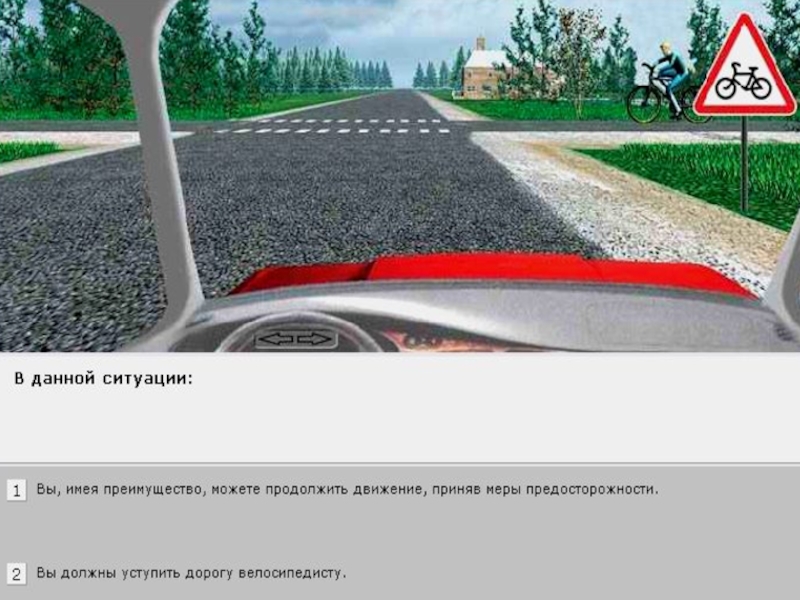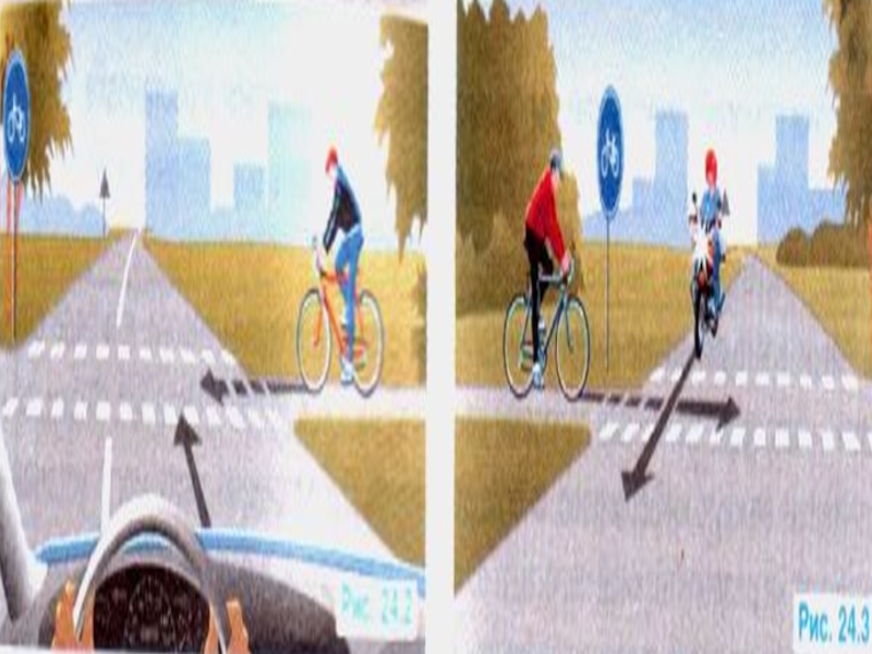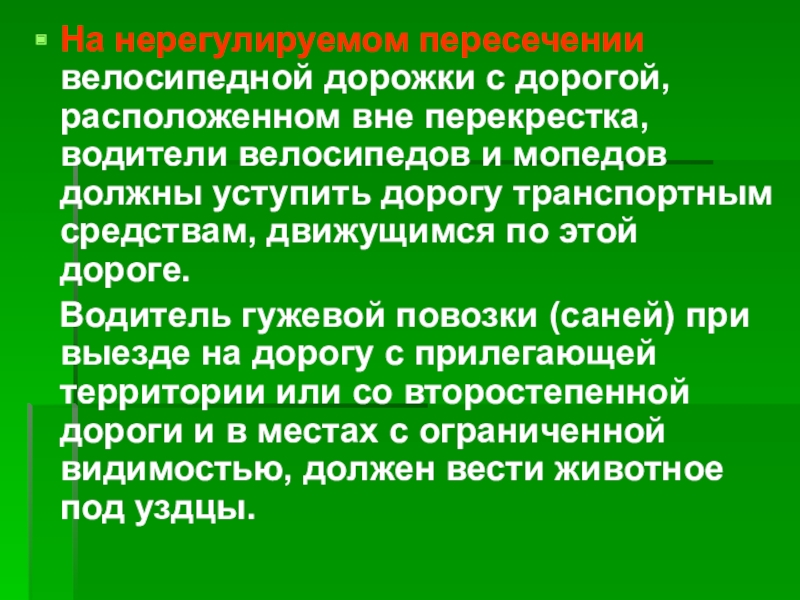 Слайд 10На нерегулируемом пересечении велосипедной дорожки с дорогой, расположенном вне перекрестка,