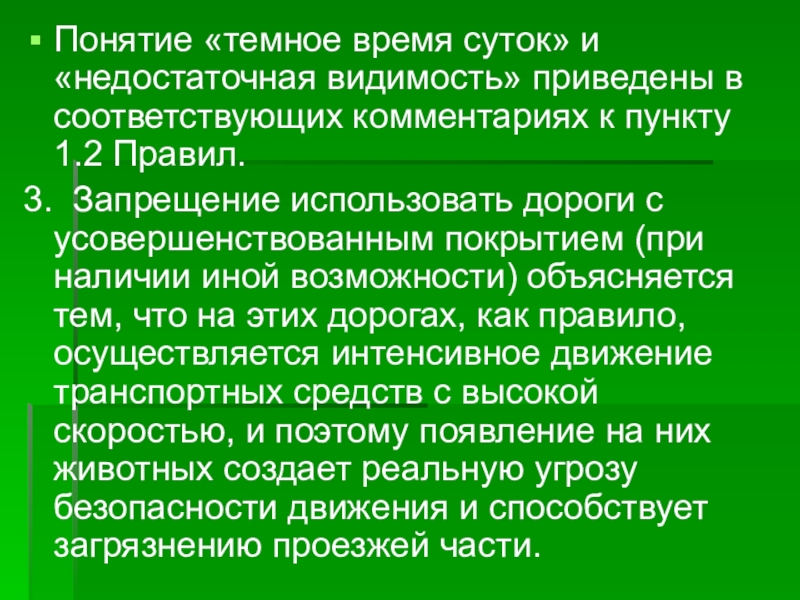 Слайд 20Понятие «темное время суток» и «недостаточная видимость» приведены в соответствующих
