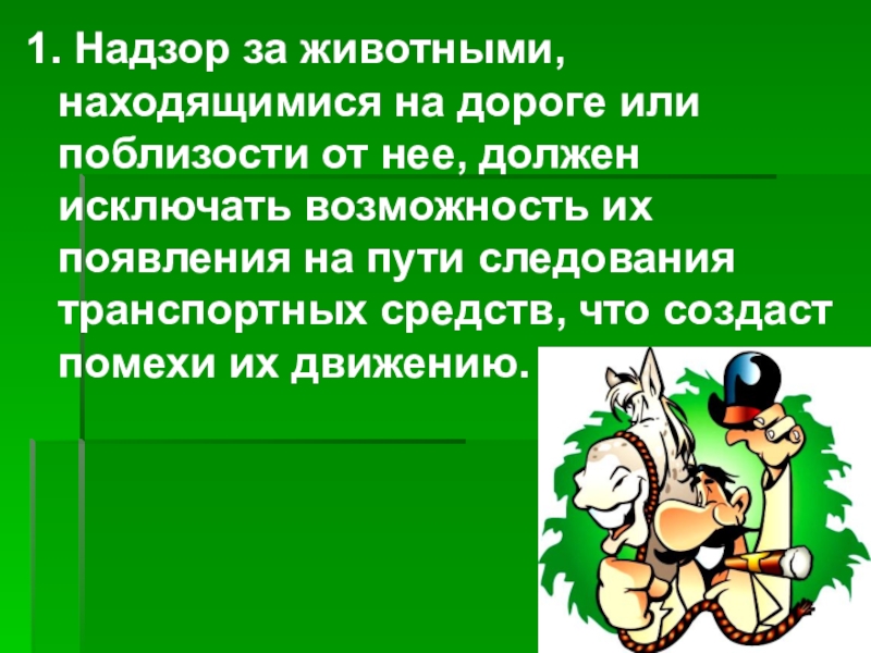 Слайд 171. Надзор за животными, находящимися на дороге или поблизости от