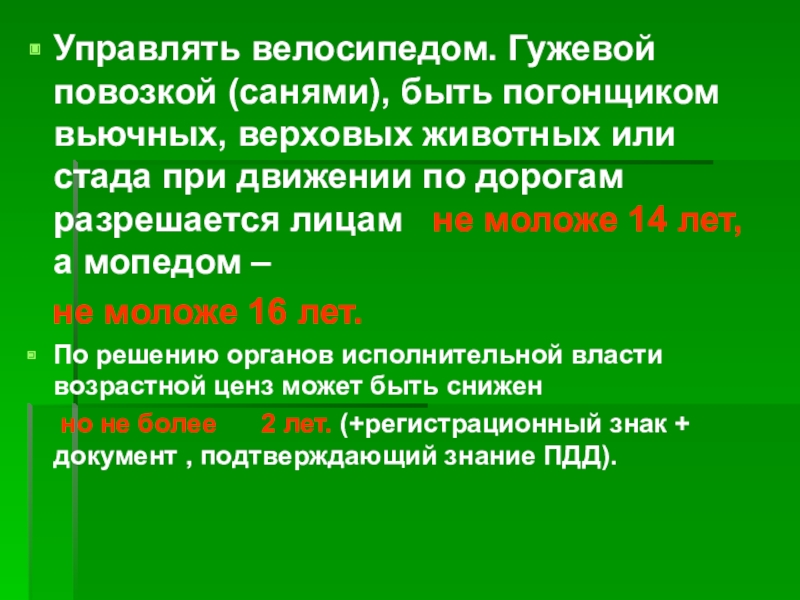 Слайд 1Дополнительные требования к движению велосипедов, мопедов, гужевых повозок, а также