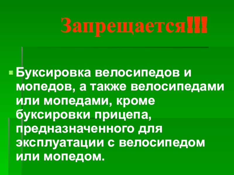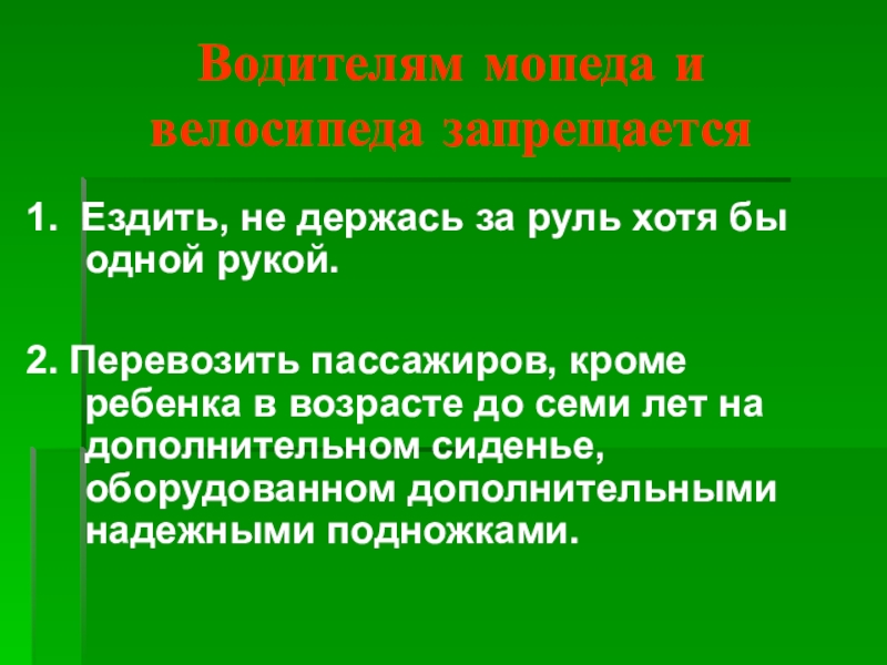 Слайд 7Водителям мопеда и велосипеда запрещается