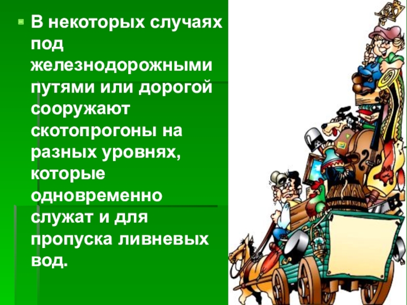 Слайд 19В некоторых случаях под железнодорожными путями или дорогой сооружают скотопрогоны