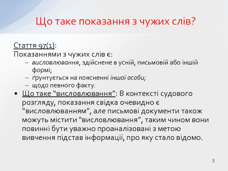Слайд 3Що таке показання з чужих слів?