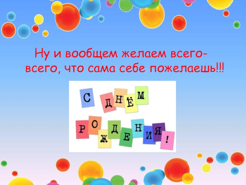 Слайд 9Ну и вообщем желаем всего-всего, что сама себе пожелаешь!!!